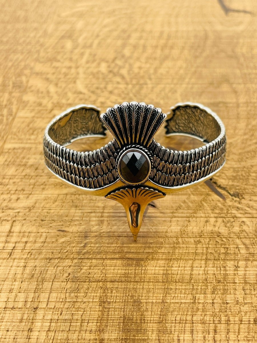 Elevate your style with this stunning men's eagle adjustable silver bracelet. Handcrafted with precision, this cuff bracelet features an intricate animal design and a striking black zircon stone, making it a remarkable piece of jewelry.