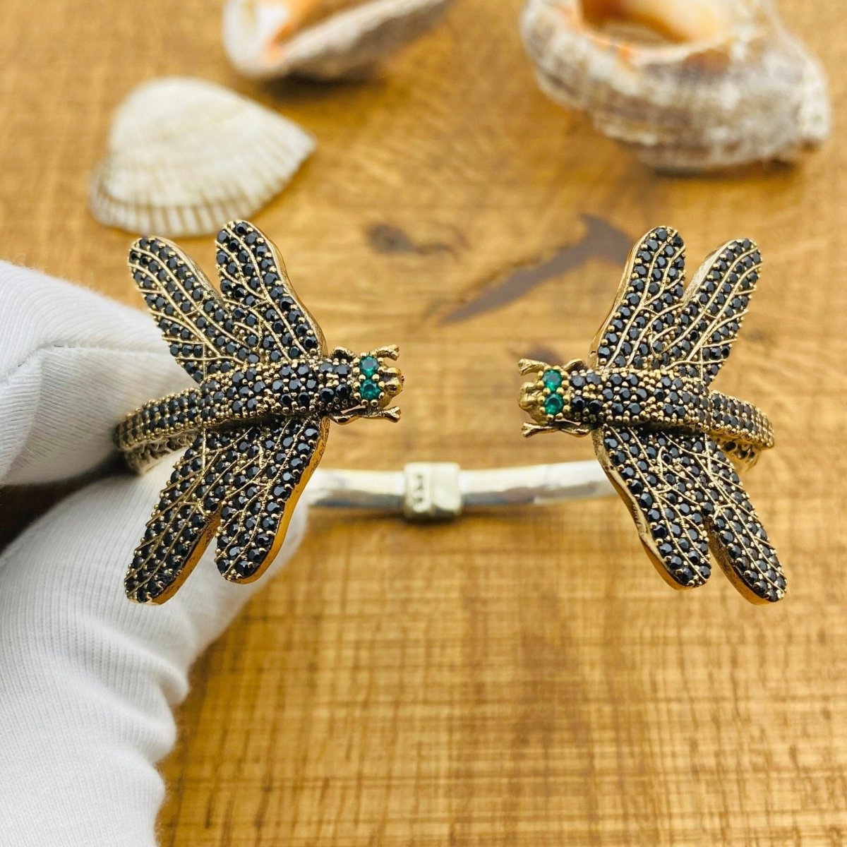 Handmade Turkish JewelryThis elegant black onyx stone bracelet features a butterfly animal design, crafted with 925 sterling silver. A perfect gift for her.