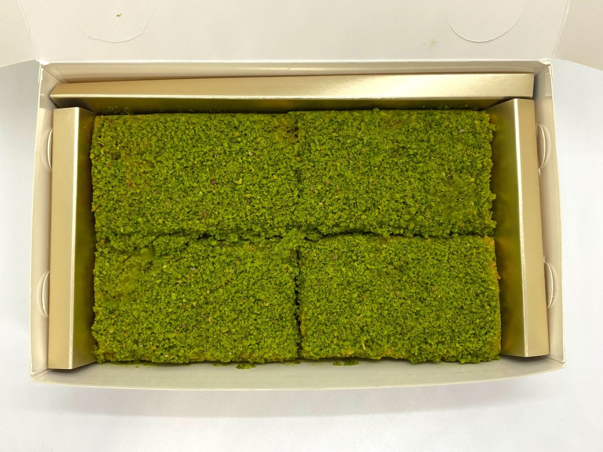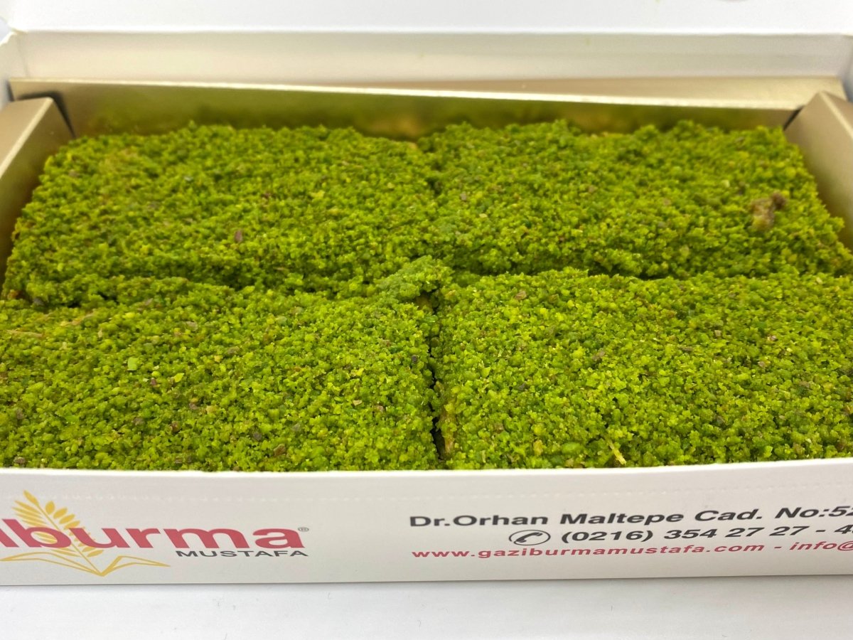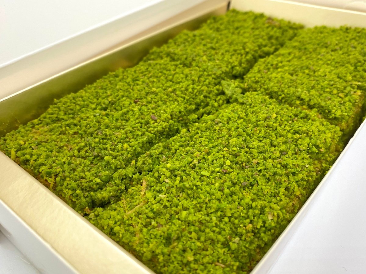 Billuria Kadayif is a flavor that's unique to Gaziburma Mustafa. It is a classic kadayif baklava made with sweet syrup and covered in a heavy amount of finely minced Turkish pistachios, to create a one of a kind flavor.