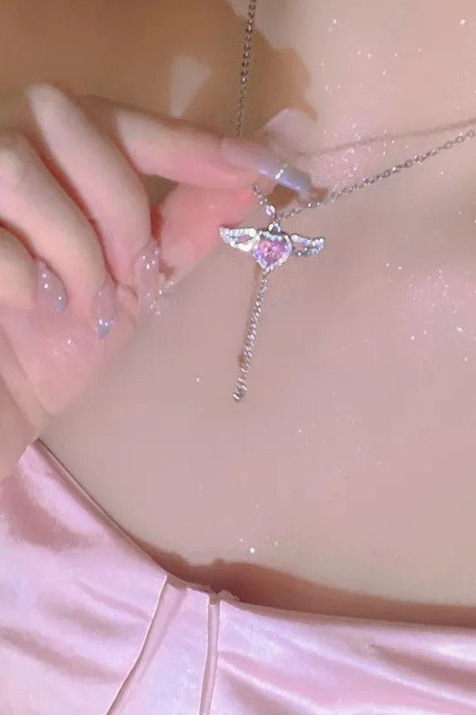 Taki | Pink Stone Women's Stainless Steel Necklace with Moving Winged Heart - TryAladdin